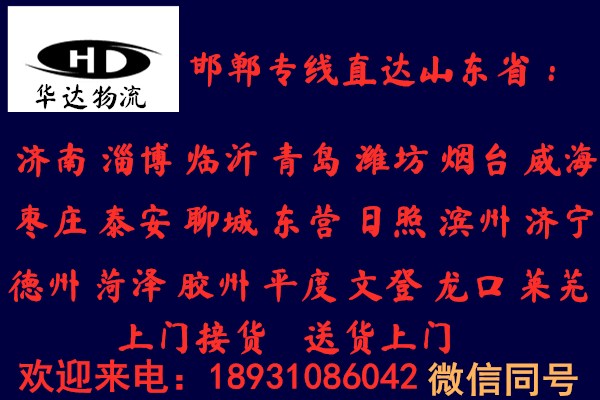 ★ 本站所l列邯鄲到威海貨運專線費用與時效僅供參考,如需詳細了解最低資費請電話咨詢。