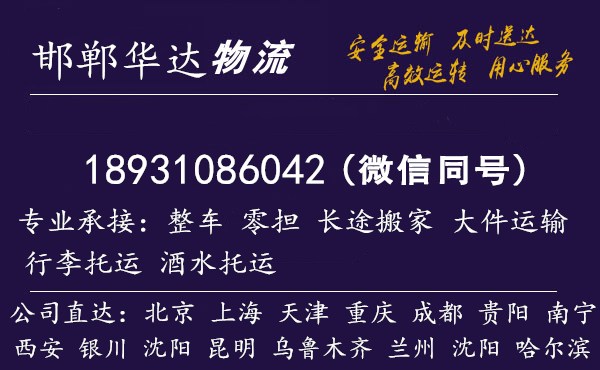 邯鄲到華達物流公司